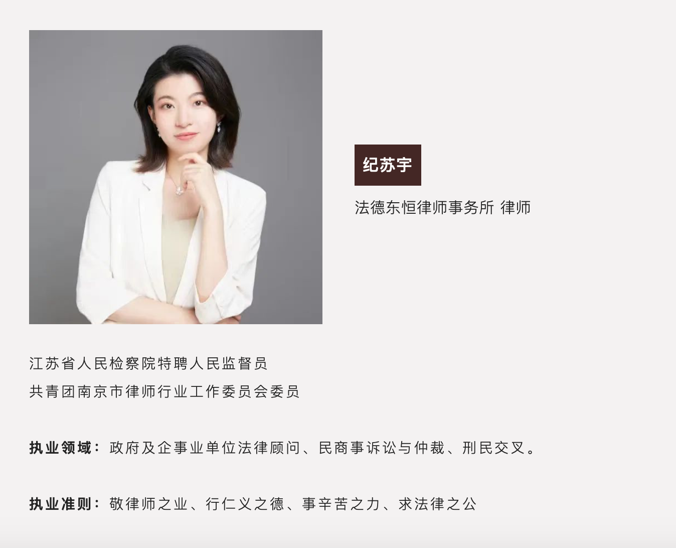 《德法同行·南京律師團》是南京市司法局、南京廣播電視集團、南京市律師協(xié)會聯(lián)合打造的王牌普法節(jié)目,年度當選的出鏡律師們,通過五分鐘原創(chuàng)普法小專題,為群眾提供生動實用有趣法律知識的窗口。紀蘇宇、李然律師將在2023年1月1日起從前六屆出鏡律師手中接過接力棒,秉承公益理念,繼續(xù)為大眾普及法律知識,展示南京律師優(yōu)良形象。