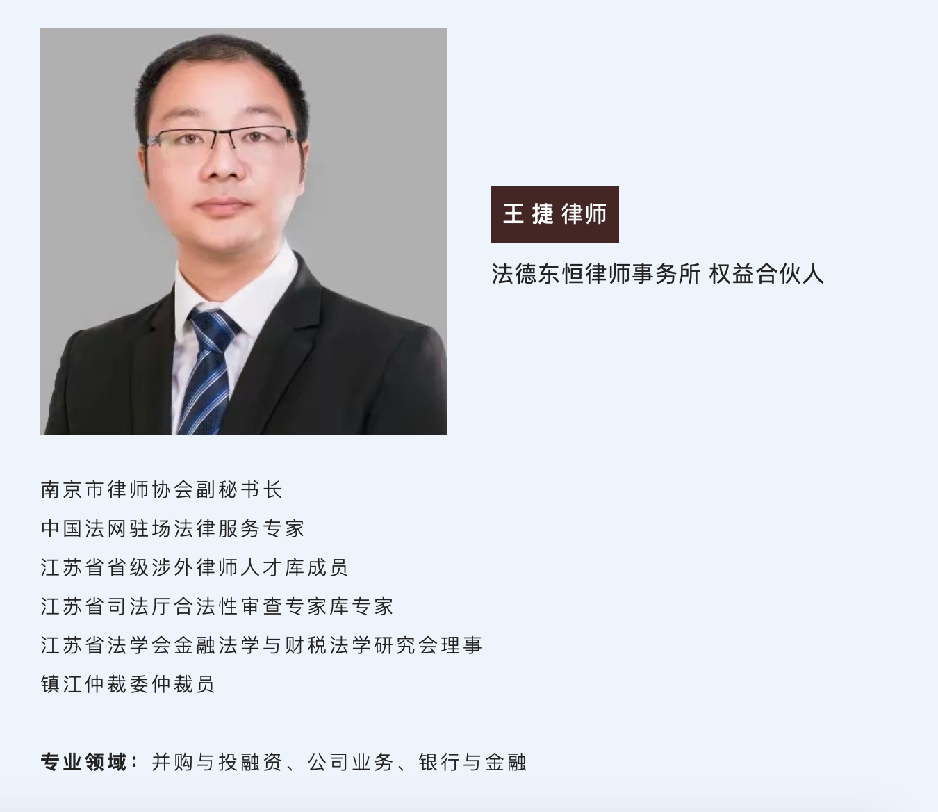 近日,民建江蘇省委企業(yè)委員會下發(fā)通知,法德東恒權益合伙人王捷律師入選第十屆民建江蘇省委法律服務中心委員。