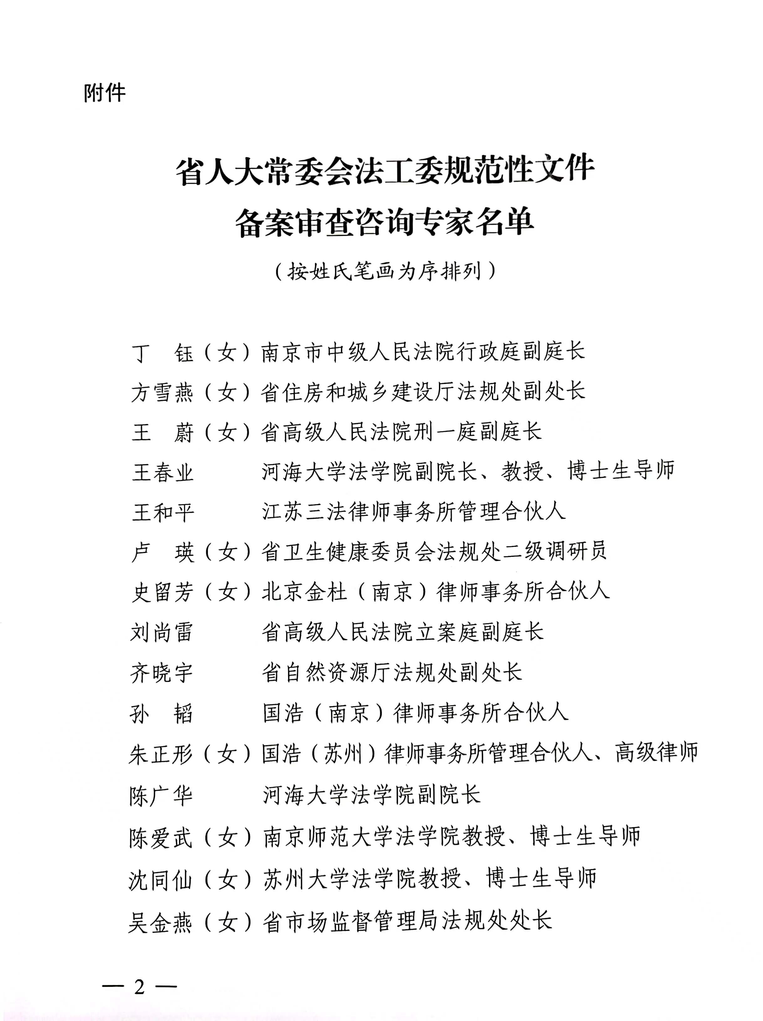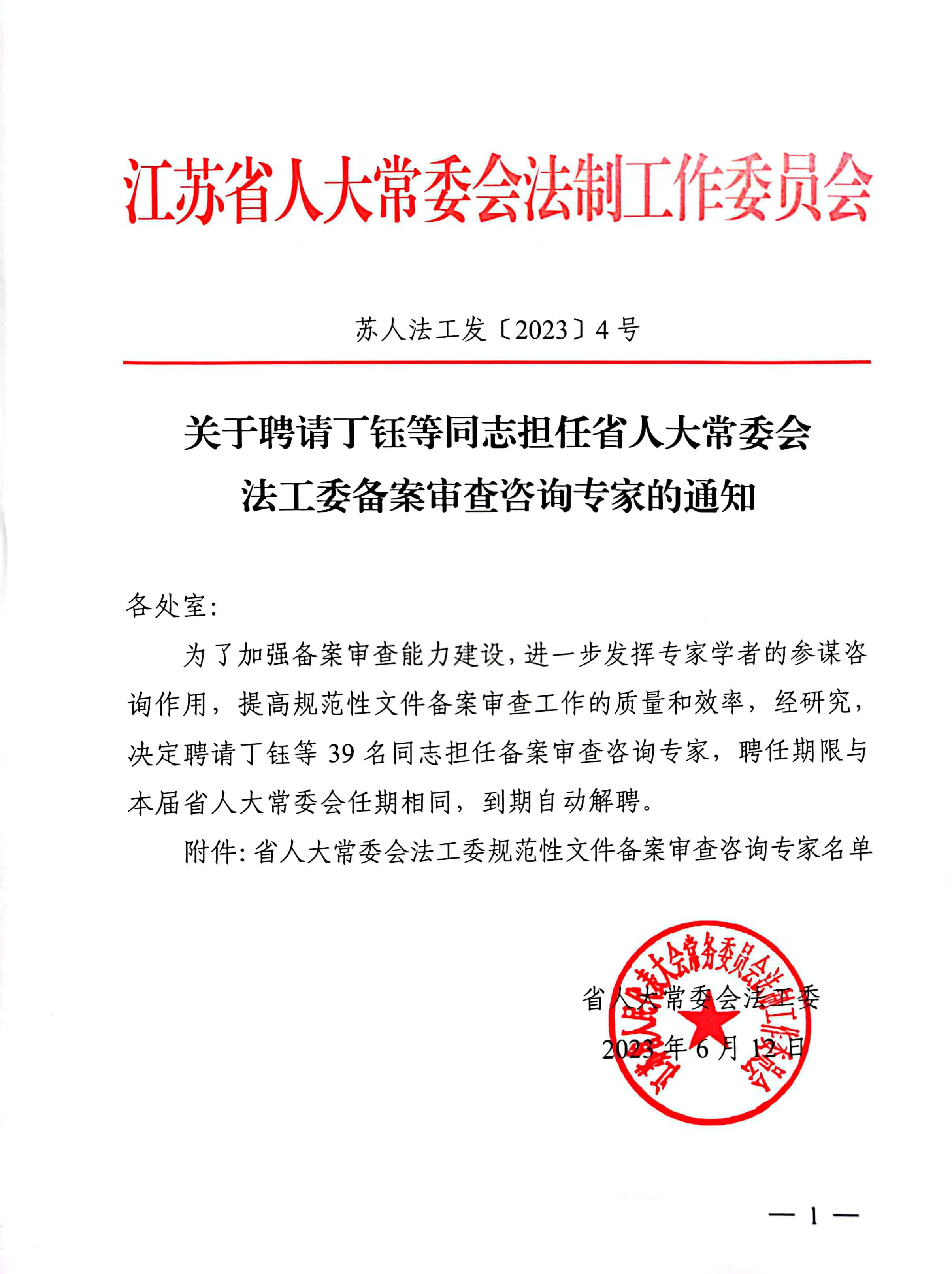 資訊 | 法德東恒藍(lán)天彬律師獲聘江蘇省人大常委會(huì)法工委規(guī)范性文件備案審查咨詢專家