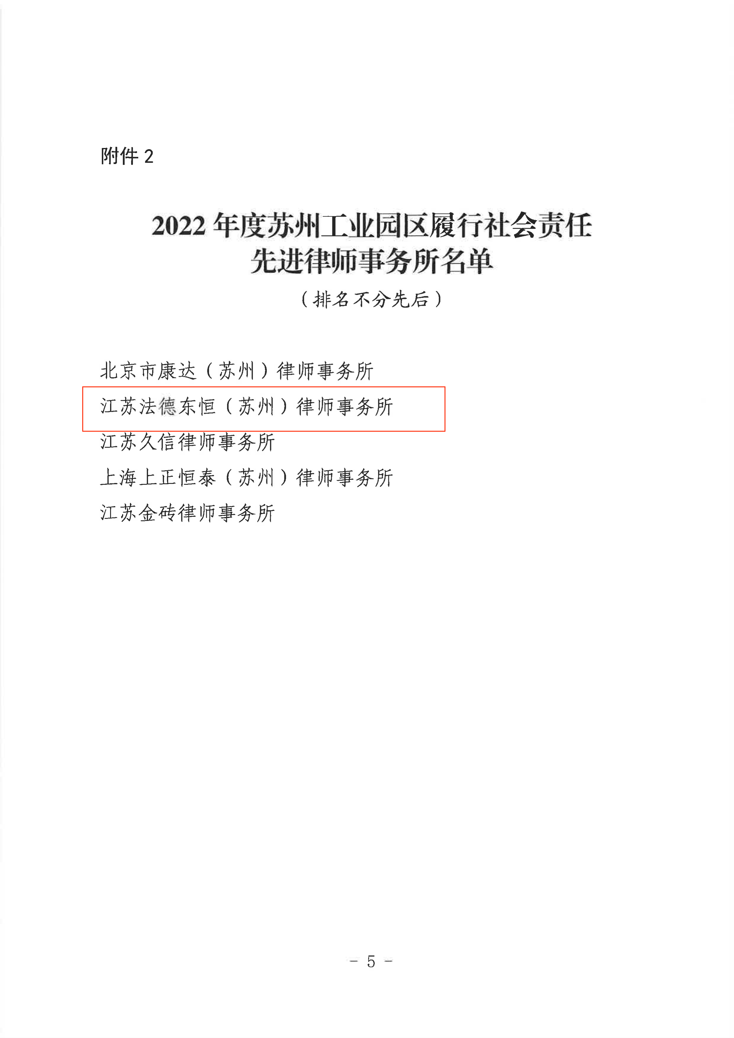 資訊丨法德東恒蘇州辦公室榮獲“2022年度蘇州工業(yè)園區(qū)履行社會責任律師事務(wù)所”等多項表彰