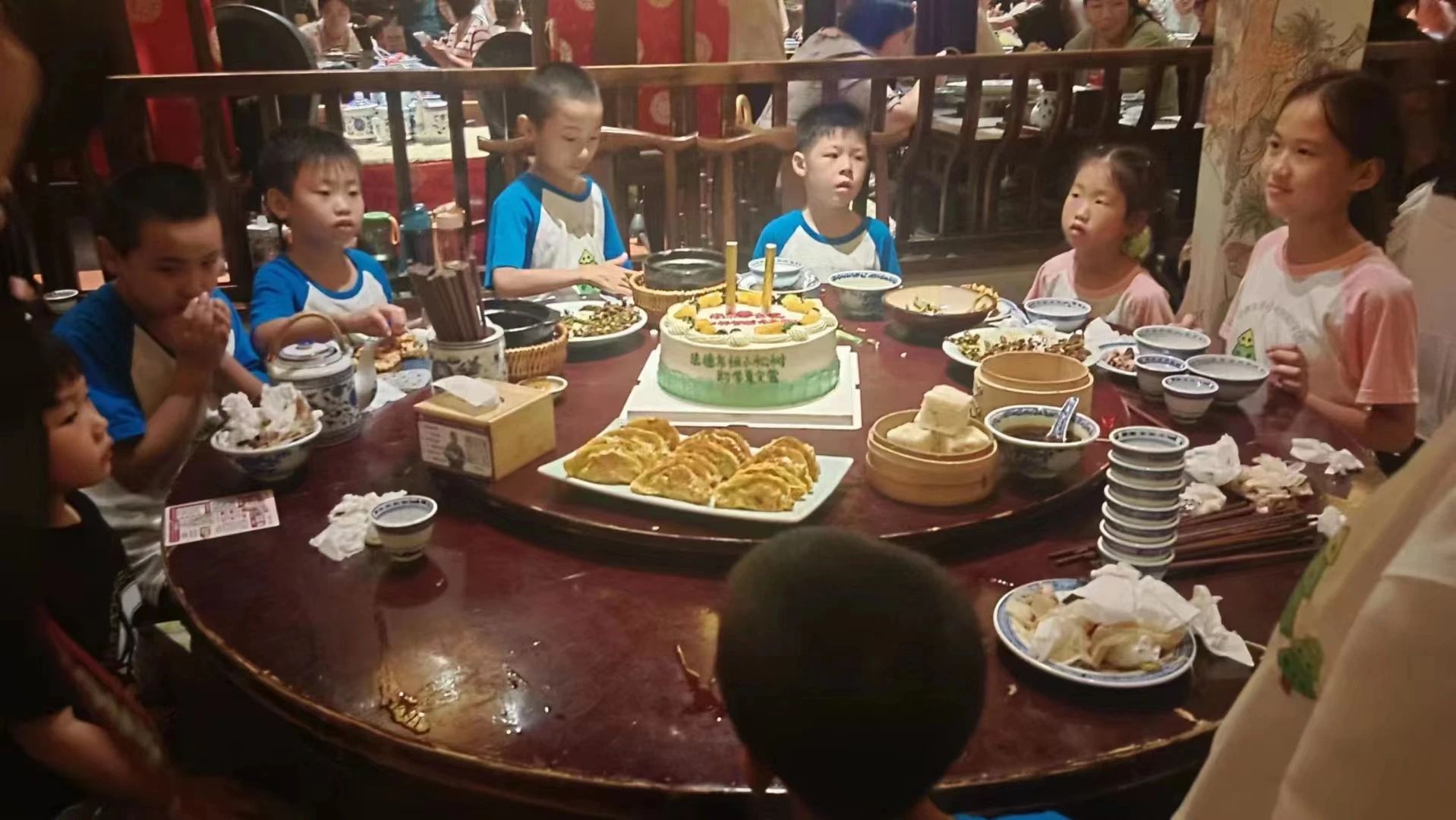 活動結(jié)束前夕,小松樹助學(xué)團(tuán)的成員來到小朋友身邊,與他們共同品嘗南京特色小吃,還準(zhǔn)備了祝福也是離別的蛋糕,蠟燭點燃,煙花四射,小朋友紛紛許下了自己的心愿,有的長大想當(dāng)律師,有的想開地鐵,有的想到南京來上學(xué)。