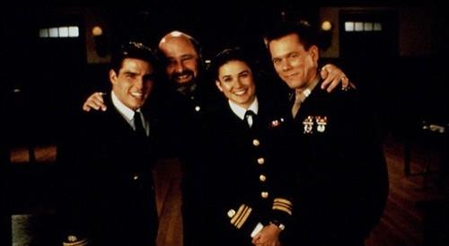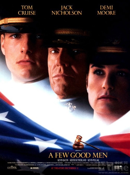 軍隊一向是具有神秘感的,正因如此,它中間更隱藏了一些不可見人的罪惡。嚴格的等級使正義在這里更難伸張,好壞在這里難以區(qū)分,是非標準模糊難定。這同時也是吸引觀眾積極參與的原因,把憑借權(quán)力作惡的卑鄙上級最終繩之以法,固然平了觀眾的怒氣,但在現(xiàn)實中,這實際上是很難實現(xiàn)的?!读x海雄風(fēng)》中明星薈萃,湯姆·克魯斯成功地扮演了一位正義的律師形象,他從容鎮(zhèn)定, 堅持真理, 在法庭上侃侃而談,步步緊逼,使真正的罪犯無處循形;杰克·尼科爾森則是老戲重唱,再一次出演典型惡棍的形象,狡詐、陰險、兇殘、 狠毒,但卻最終無法逃脫正義法律的制裁;黛米·摩爾一改淑女形象,穿起軍裝在銀幕上留下了一種英姿颯爽的美。影片由于對人權(quán)平等、權(quán)力泛濫和人性險惡作了嚴肅深刻的揭示而獲得了1993年奧斯卡最佳影片,最佳 男配角,最佳剪輯,最佳音響四項提名,可謂名符其實。