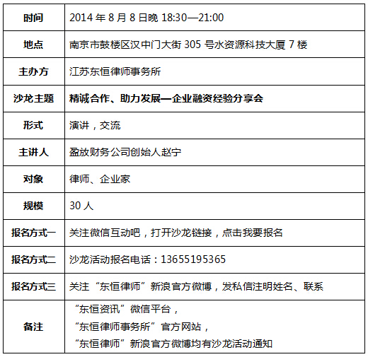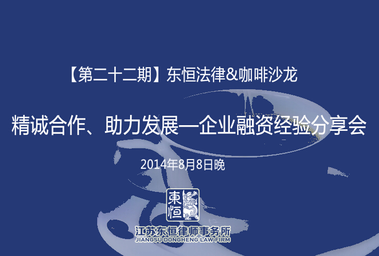 江蘇法德東恒律師事務(wù)所第二十二期“法德東恒法律&咖啡沙龍”將于本周五晚舉行,本期沙龍由盈放財(cái)務(wù)公司創(chuàng)始人趙寧主講“精誠合作、助力發(fā)展—企業(yè)融資經(jīng)驗(yàn)分享會”,歡迎大家參加!