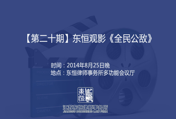 為開(kāi)闊律師視野,增加律師人文情懷,探究律師執(zhí)業(yè)意義,法德東恒律師事務(wù)所第20期觀影活動(dòng)于8月25日(周一)晚六點(diǎn)半在多功能會(huì)議廳舉行,屆時(shí)將放映《全民公敵》。
