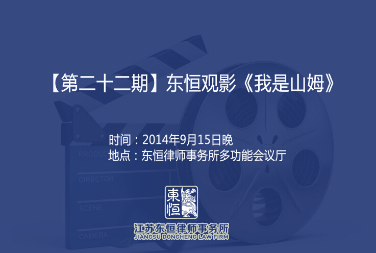 為開闊律師視野,增加律師人文情懷,探究律師執(zhí)業(yè)意義,法德東恒律師事務(wù)所第22期觀影活動(dòng)于9月15日(周一)晚六點(diǎn)半在多功能會(huì)議廳舉行,屆時(shí)將放映《我是山姆》。