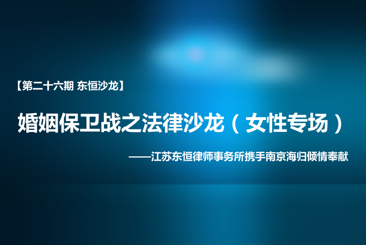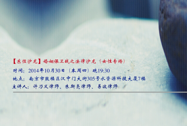 江蘇法德東恒律師事務(wù)所第26期“法德東恒法律&咖啡沙龍”將于2014年10月30日(本周四)晚19:30在多功能會議室舉行,本期沙龍聯(lián)合南京海歸特別舉辦女性專場。沙龍主題:婚姻保衛(wèi)戰(zhàn)之法律沙龍(女性專場),歡迎各位女性朋友參加。