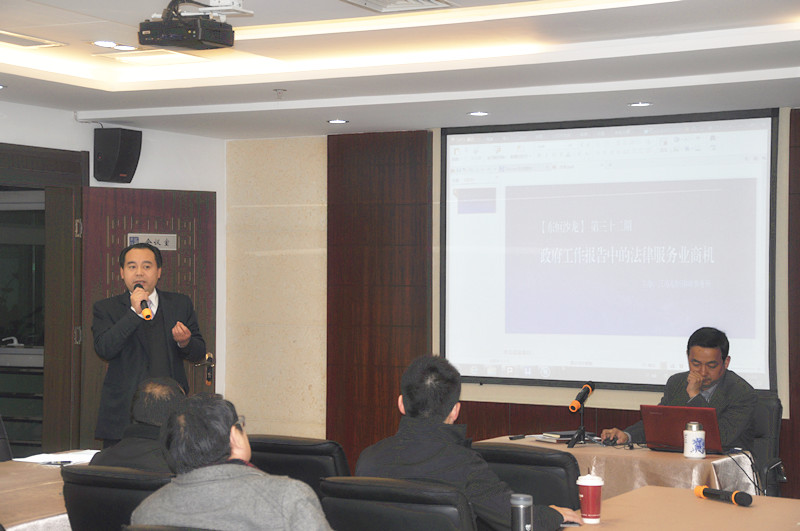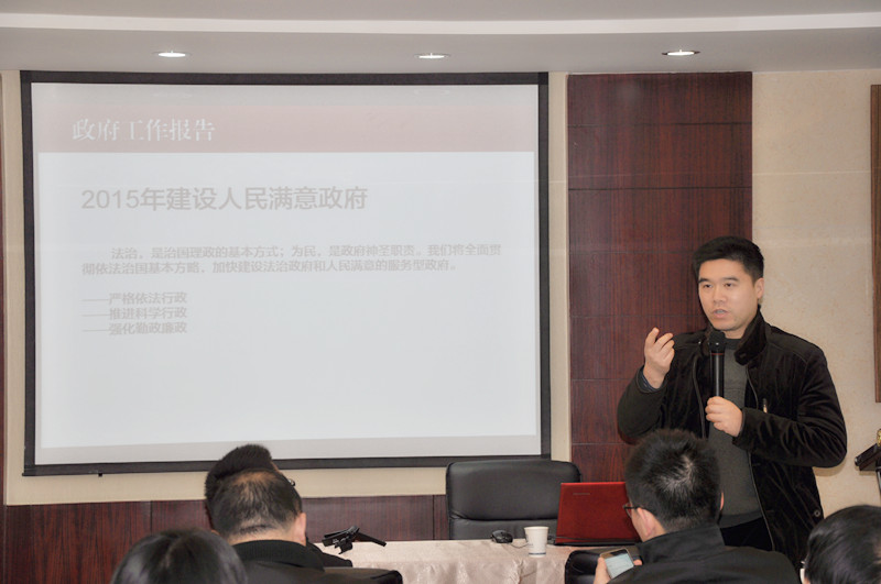 活動(dòng)中,我所黨支部書(shū)記曹小寅律師就公共法律服務(wù)體系建設(shè)、政府普遍建立法律顧問(wèn)制度的重要性及緊迫性作了專題介紹。緊接著,魏東主任帶領(lǐng)大家共同研讀了南京市政府工作報(bào)告,尤其對(duì)市政府2015年八個(gè)方面重點(diǎn)工作進(jìn)行了深入學(xué)習(xí)和談?wù)摗?