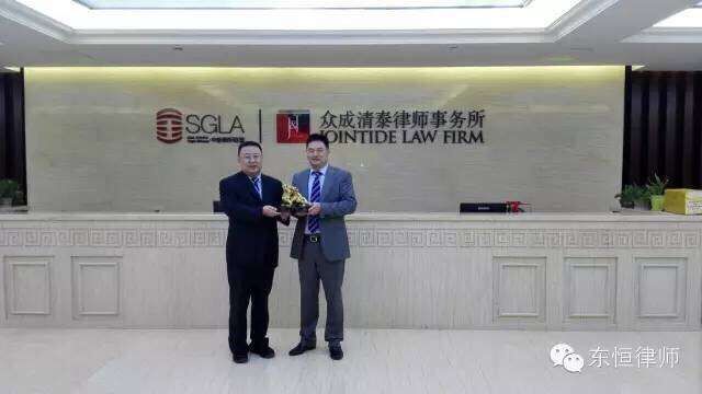 法德東恒所張利軍主任首先表示了對眾成清泰成立的祝賀,接著在耿主任的帶領下,法德東恒律師參觀了眾成清泰現(xiàn)代時尚的4500平米辦公室,隨后雙方就包括律所的管理、律師行業(yè)的發(fā)展現(xiàn)狀和律所合作等問題進行了深入探討,達成多項共識。