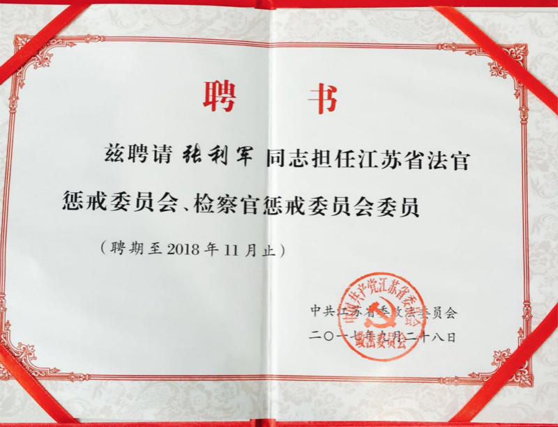 2017年10月13日上午,江蘇省法官懲戒委員會和省檢察官懲戒委員會會議在南京召開。會議通報了省法官懲戒委員會、省檢察官懲戒委員會組建情況;兩院有關領導對懲戒辦法和懲戒委員會工作規(guī)則作了說明;全體委員對懲戒辦法和懲戒委員會工作規(guī)則進行了審議;懲戒委員會主任作了講話。法德東恒張利軍主任出席了會議并受聘擔任江蘇省法官懲戒委員會、檢察官懲戒委員會委員。
