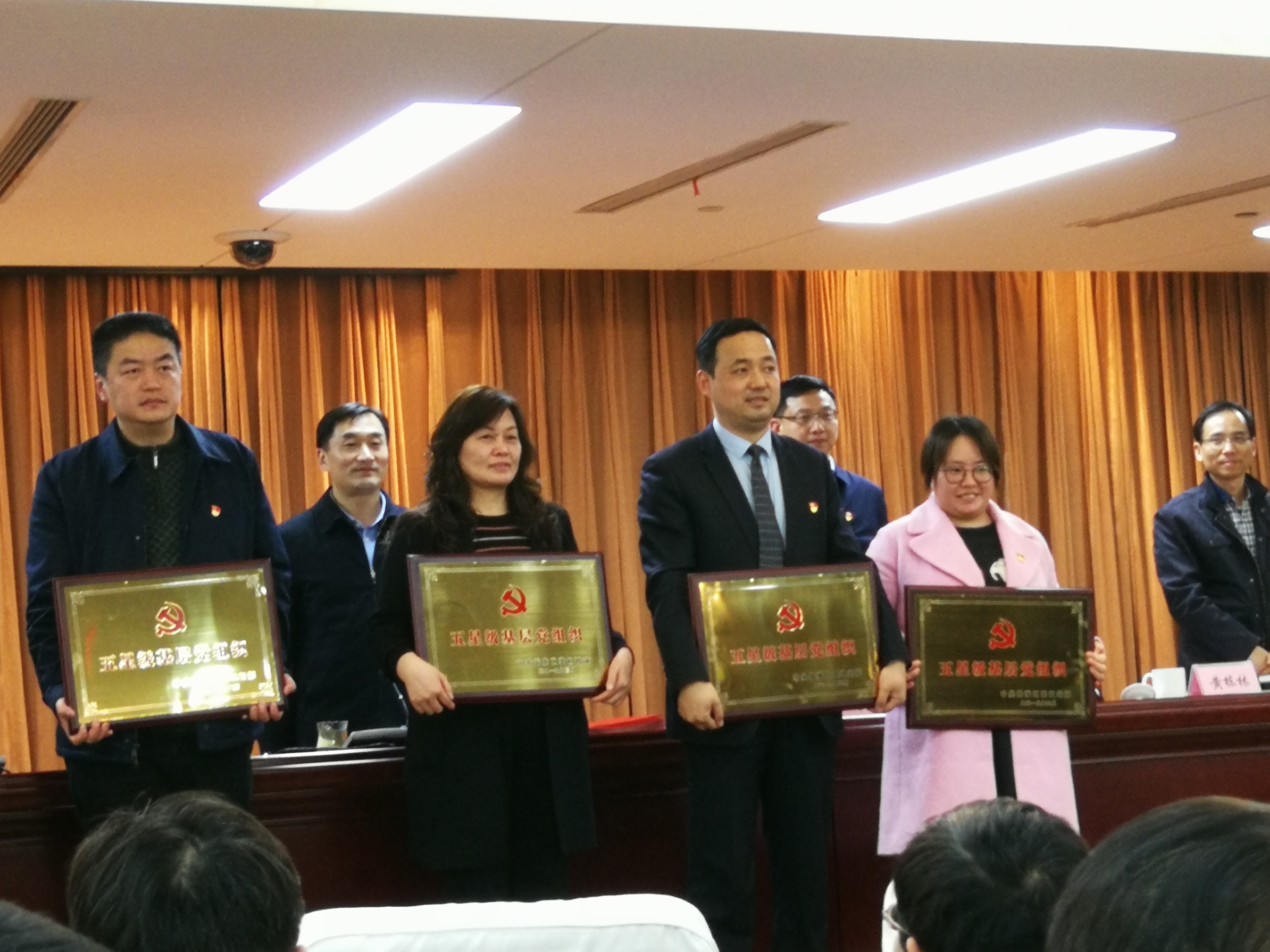 △法德東恒所黨支部書記曹小寅(左三)在2019年全區(qū)黨建工作領(lǐng)導(dǎo)小組會(huì)暨組織、統(tǒng)戰(zhàn)工作部署會(huì)上接受表彰