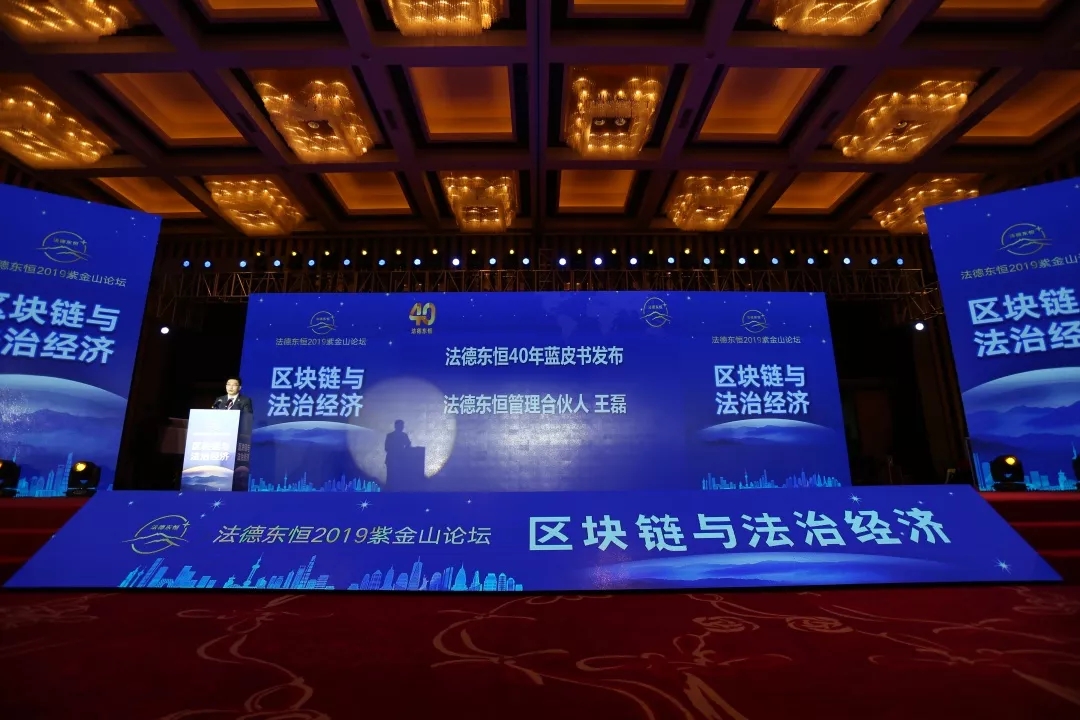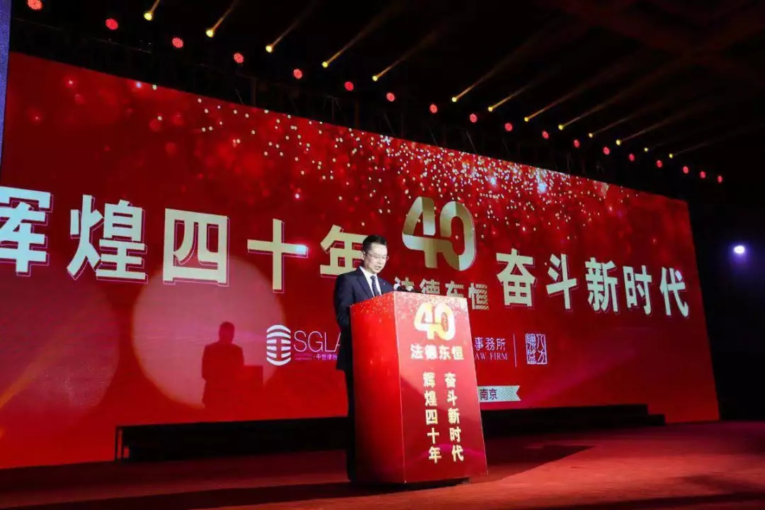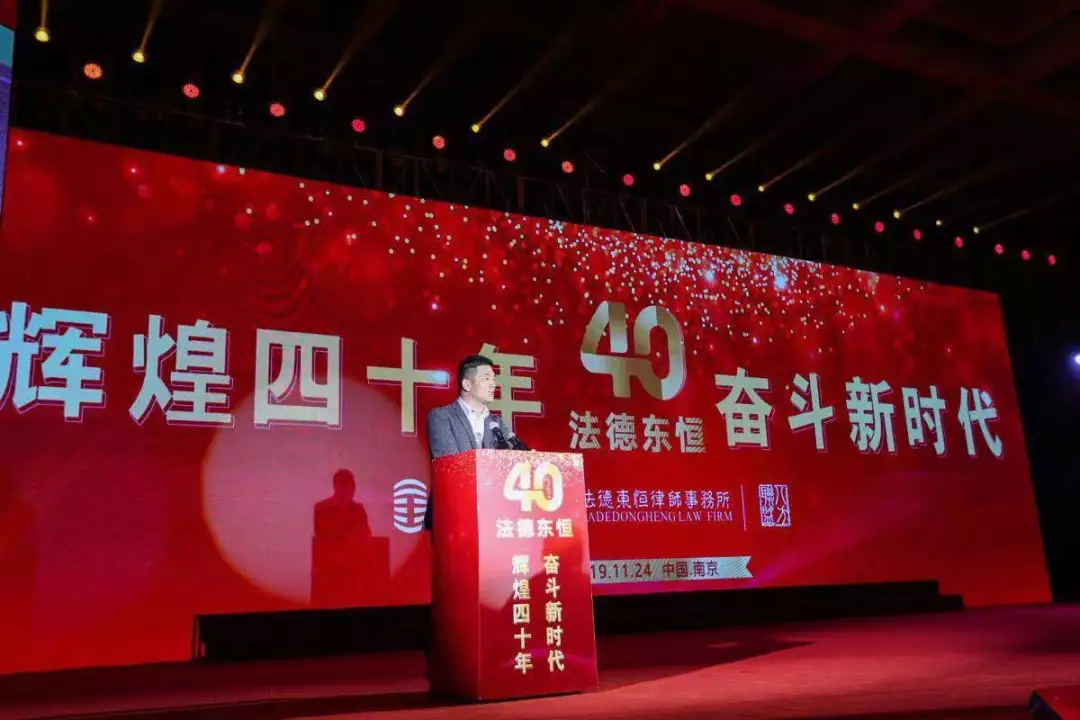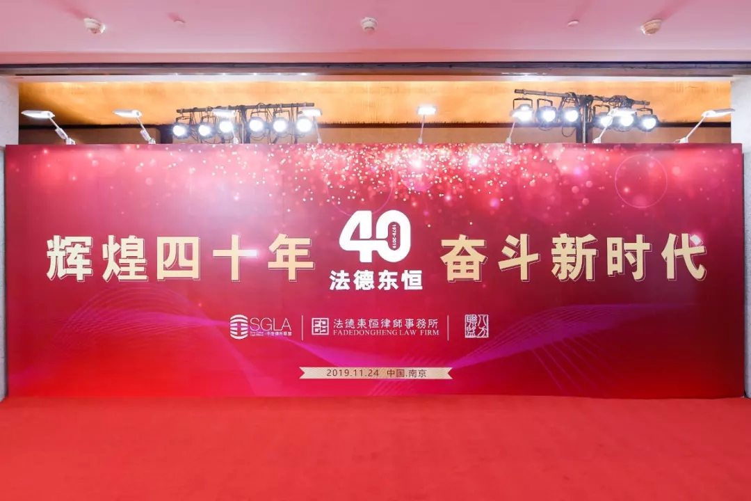 長(zhǎng)歌激蕩,歲月崢嶸,2019年,是中華人民共和國(guó)成立70周年,是中國(guó)律師制度重登時(shí)代舞臺(tái)40周年,也是江蘇法德東恒律師事務(wù)所建所40周年。2019年11月24日,法德東恒四十周年慶典在南京紫金山莊舉行,本次盛會(huì)分為中世律所聯(lián)盟與八方律師聯(lián)盟黨建研討會(huì)、法德東恒紫金山(區(qū)塊鏈與法治經(jīng)濟(jì))論壇、四十周年慶典三個(gè)篇章。