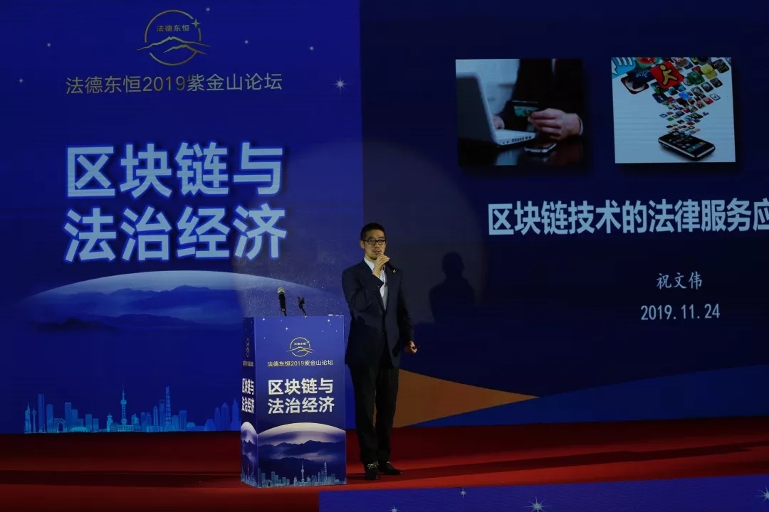 上海區(qū)塊鏈技術(shù)中心副主任祝文偉對(duì)區(qū)塊鏈技術(shù)進(jìn)行了專業(yè)解讀,并就區(qū)塊鏈背后蘊(yùn)含的法律變革與新時(shí)代下法律制度與新技術(shù)的自洽和諧,帶來(lái)了《區(qū)塊鏈技術(shù)的法律服務(wù)應(yīng)用與挑戰(zhàn)》的主旨演講。
