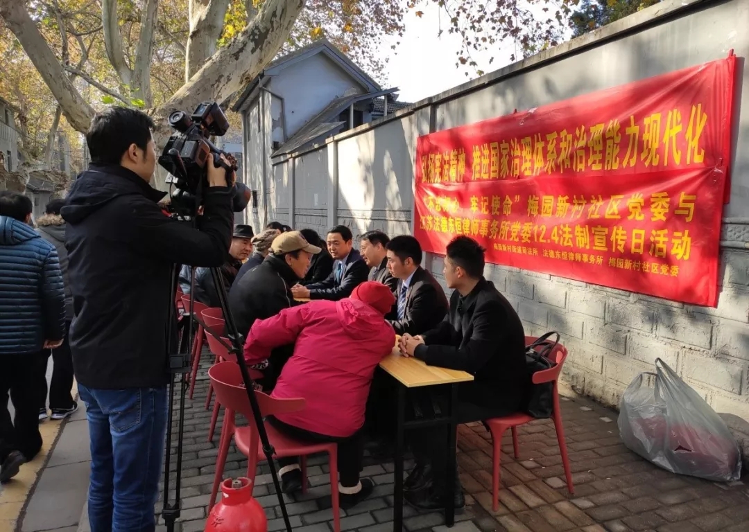 12月4日是我國現(xiàn)行憲法的實施日,也是國家法制宣傳日。江蘇法德東恒律師事務(wù)所黨委與梅園新村社區(qū)黨委聯(lián)合開展了“不忘初心、牢記使命”法制宣傳日活動,向社區(qū)干部、群眾普及法律知識,解答法律問題。