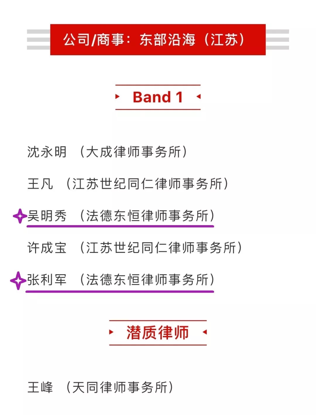 榮獲推薦的律師榜單