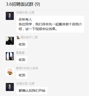 3月6日,法德東恒首場線上面試正式拉開了序幕。本著“公平,公正,公開”的面試原則,法德東恒高級合伙人汪源提前測試線上面試效果,確保面試過程的流暢性。
