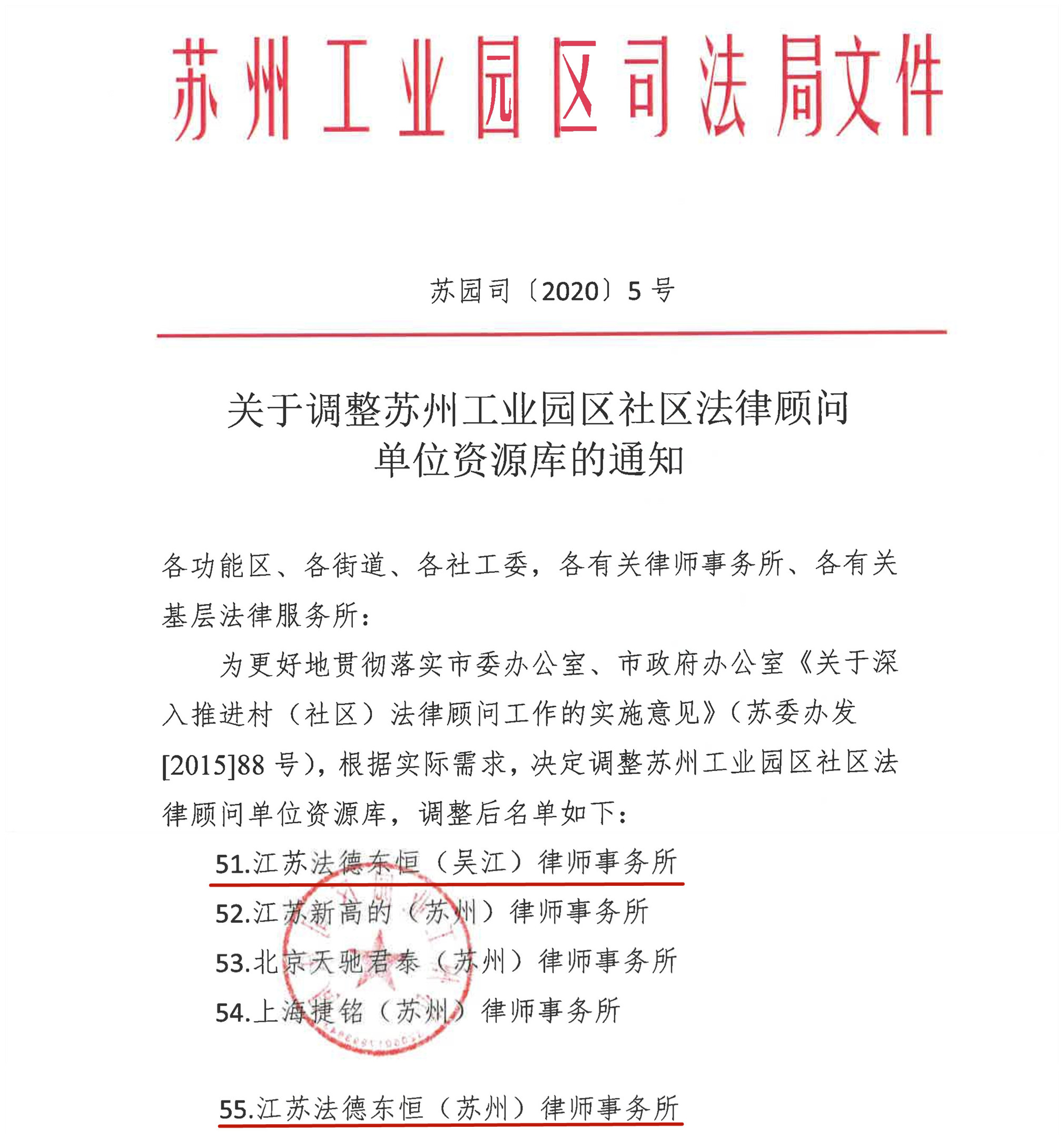法德東恒蘇州、吳江分所成功入選蘇州工業(yè)園區(qū)社區(qū)法律顧問單位資源庫