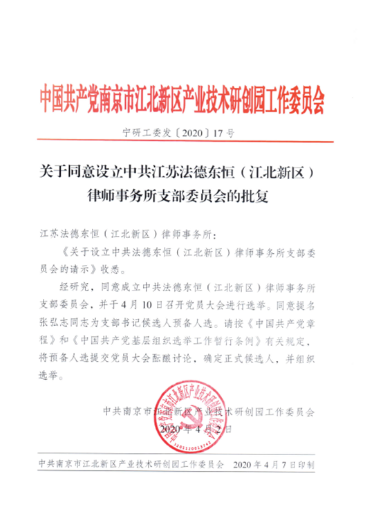 江蘇法德東恒律師事務(wù)所積極投身建設(shè)江北新區(qū)這一國家級(jí)新區(qū),于江北新區(qū)成立之初即設(shè)立了江北分所,現(xiàn)今謹(jǐn)遵黨支部成立要求,在法德東恒黨委與研創(chuàng)園黨工委的幫助指導(dǎo)下成立了中共江蘇法德東恒(江北新區(qū))律師事務(wù)所支部委員會(huì)。黨的基層組織是確保黨的路線方針政策和決策部署貫徹落實(shí)的基礎(chǔ)。法德東恒深刻認(rèn)識(shí)到黨的基層組織在新時(shí)代的定位與要求,深切體會(huì)到江北新區(qū)的建設(shè)發(fā)展需求,今后將努力貫徹落實(shí)黨的基層建設(shè)工作、傾力投入江北新區(qū)的建設(shè)發(fā)展工作,做好強(qiáng)基固本筑堡壘的基層黨建工作,奮力開啟江北新區(qū)社會(huì)主義現(xiàn)代化建設(shè)新征程。