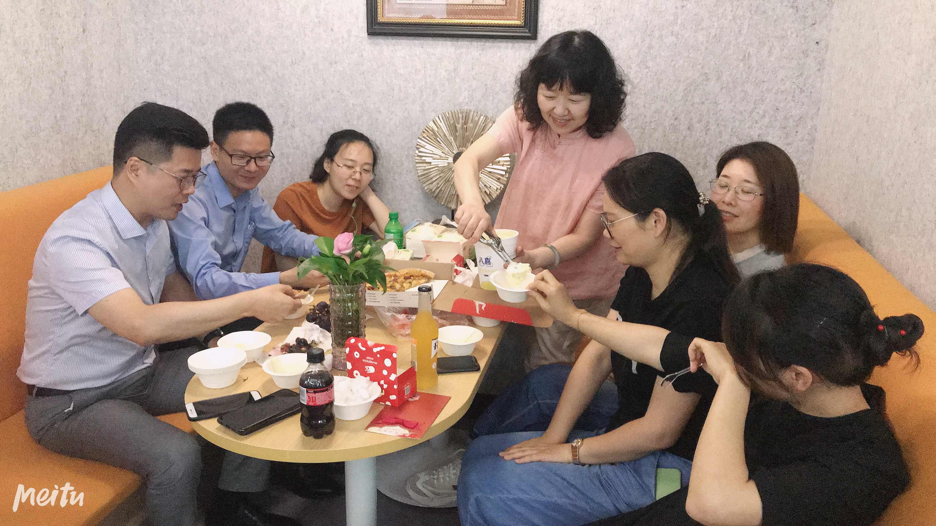 行政團隊為活動現(xiàn)場做了布置,準備了美味的蛋糕、甜點和水果,同時也為每一位壽星送上了精心準備的生日禮物。