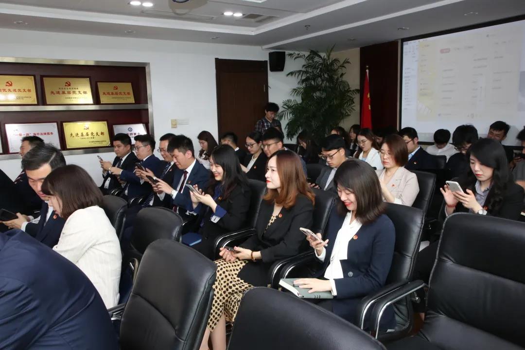 共青團(tuán)南京市委書記呂璟,南京市司法局黨組成員、副局長,市律師行業(yè)黨委書記陳宣東,共青團(tuán)玄武區(qū)委書記秦潔,玄武區(qū)司法局黨組成員、副局長茅曉春,法德東恒律師事務(wù)所主任萬永松、執(zhí)委會主席張利軍、黨委紀(jì)檢委員陸發(fā)達(dá),以及全體團(tuán)員出席了此次大會。會議由法德東恒黨委書記曹小寅主持。