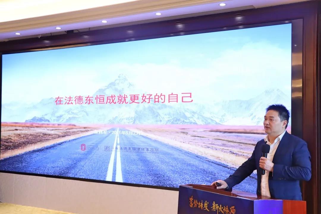 法德東恒執(zhí)委會(huì)主席張利軍律師作《在法德東恒成就更好的自己》的主題分享。他指出要以責(zé)為貴,做一個(gè)有擔(dān)當(dāng)?shù)娜?。以進(jìn)為榮,做一個(gè)有追求的人。以榮為大,做一個(gè)有情懷的人。以德為先,做一個(gè)有操守的人。人須在事上磨,方立得住,方能“靜亦定,動(dòng)亦定”。期望在座各位能成為法德東恒的接班人,用優(yōu)秀的個(gè)人業(yè)績(jī)成就法德東恒這個(gè)優(yōu)秀的平臺(tái),共同發(fā)展,共同進(jìn)步。