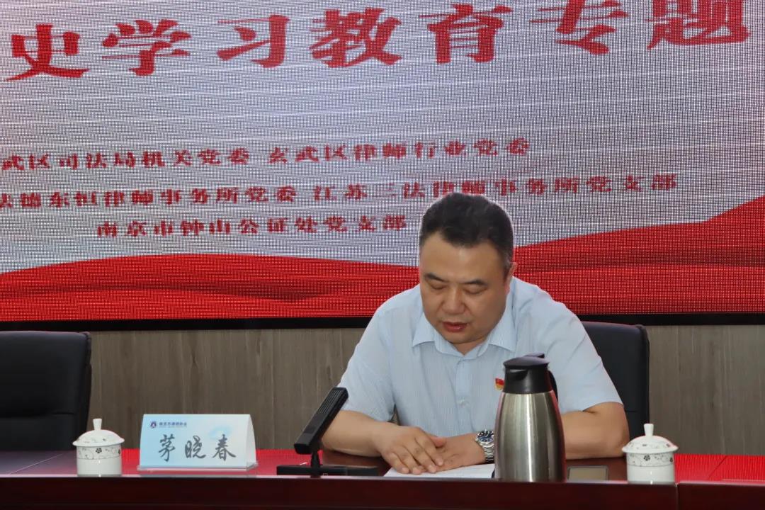 6月2日下午,為深入推進黨史學習教育,重溫黨的奮斗歷程,玄武區(qū)司法局機關(guān)工委、律師行業(yè)黨委主辦,江蘇法德東恒律師事務(wù)所黨委、江蘇三法律師事務(wù)所黨支部、南京市鐘山公證處黨支部承辦的“追尋紅色足跡、感悟奮斗歷程”黨史學習教育專題黨課活動,在市律師協(xié)會大報告廳舉行。