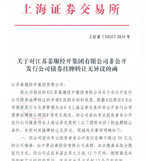 法德東恒律師事務(wù)所接受江蘇姜堰經(jīng)開集團有限公司(簡稱姜堰經(jīng)開集團或發(fā)行人)的委托,擔(dān)任其在上海證券交易所非公開發(fā)行不超過20億元公司債券的專項法律顧問,并組成項目組對發(fā)行人進行盡職調(diào)查,為發(fā)行人本次發(fā)行出具了法律意見書,并針對上海證券交易所的反饋意見出具了補充法律意見書進行回復(fù),通過與主承銷商等其他機構(gòu)努力合作,上海證券交易所于2020年12月17日出具了上證函[2020]2834號的《無異議函》,同意姜堰經(jīng)開集團面向合格投資者非公開發(fā)行不超過20億元公司債券,并在無異議函出具之日起12個月內(nèi)分期發(fā)行。
