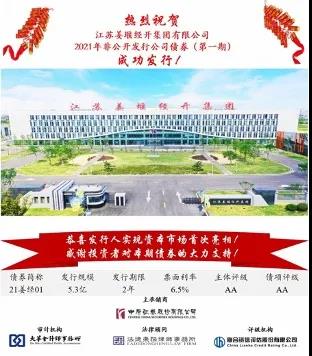2021年6月18日,姜堰經(jīng)開集團完成首期發(fā)行,發(fā)行額度為5.3億元人民幣,發(fā)行票面利率6.5%,發(fā)行期限2年。本次發(fā)行屬于姜堰經(jīng)開集團首次在資本市場發(fā)行債券。