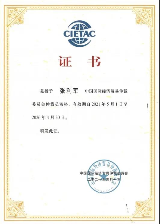 法德東恒資訊丨張利軍律師受聘為中國國際經(jīng)濟貿易仲裁委員會仲裁員