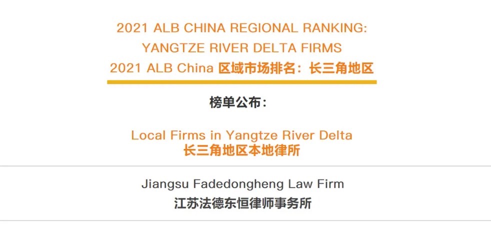 榮譽(yù)丨法德東恒入選“2021 ALB China 區(qū)域市場(chǎng)排名:長(zhǎng)三角地區(qū)”榜單