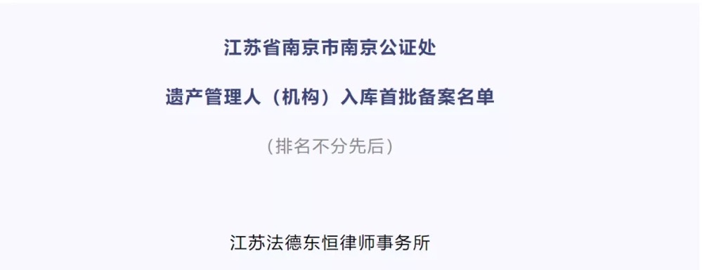 律所動(dòng)態(tài)丨法德東恒律師事務(wù)所入選南京公證處首批遺產(chǎn)管理人推薦庫