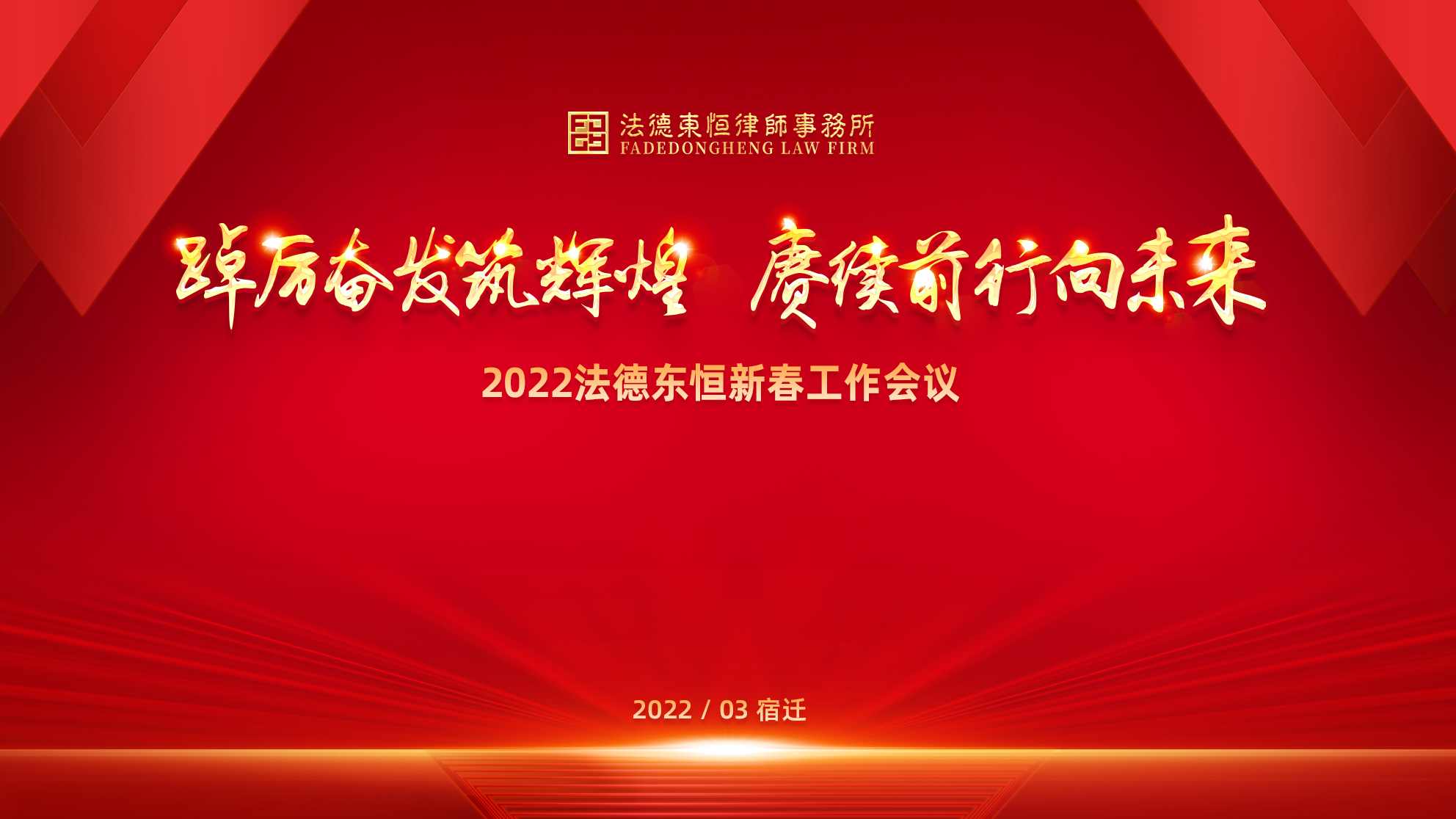 3月5-6日,法德東恒律師事務(wù)所2022年新春工作會(huì)在美麗的宿遷駱馬湖畔圓滿召開(kāi)。會(huì)議由管理合伙人王磊主持,全體合伙人、分所負(fù)責(zé)人、擬晉升合伙人、受表彰人員等150余人齊聚一堂,回顧過(guò)往,共話發(fā)展。