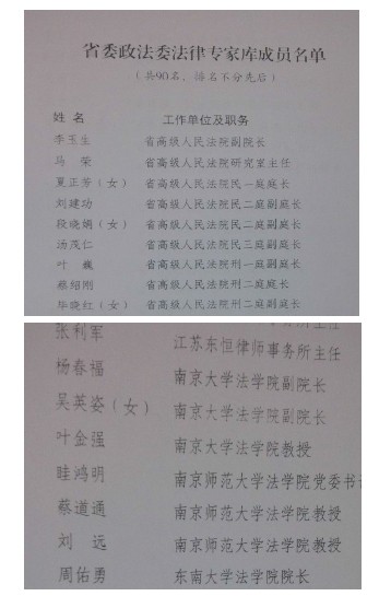 2013年11月20日,中共江蘇省委政法委員會發(fā)布蘇政法〔2013〕71號文,宣布聘任張利軍等90名同志為“省委政法委法律專家?guī)臁背蓡T。