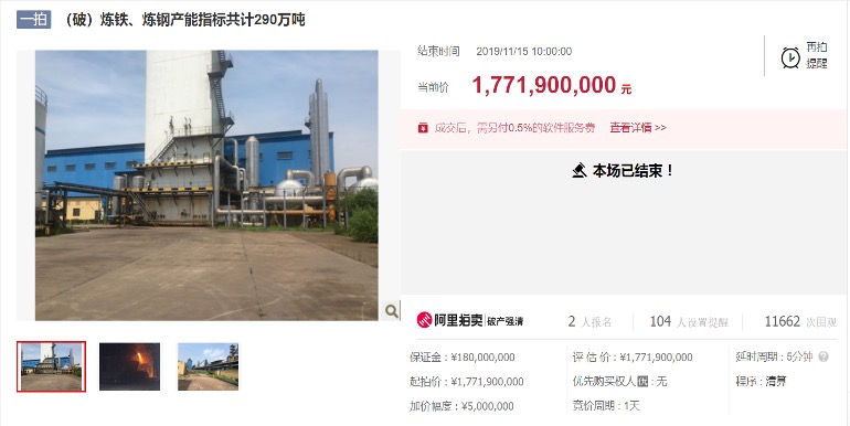 290萬噸煉鐵、煉鋼產(chǎn)能指標(biāo)是利國公司核心資產(chǎn),對其變價(jià)后可大幅增加普通債權(quán)人的清償率。2016年2月,國務(wù)院印發(fā)《關(guān)于鋼鐵行業(yè)化解過剩產(chǎn)能實(shí)現(xiàn)脫困發(fā)展的意見》,要求用5年時(shí)間壓減粗鋼產(chǎn)能1-1.5億噸。利國公司煉鐵、煉鋼產(chǎn)能指標(biāo)的處置恰逢該期間,管理人通過研判國家、省、市去產(chǎn)能文件,綜合考慮國家去產(chǎn)能任務(wù)年限,在銅山法院的支持下與工信部門溝通,并啟動產(chǎn)能指標(biāo)拍賣程序,于2019年11月15日成交,成交價(jià)款高達(dá)17.7億余元。目前普通債權(quán)的清償率高達(dá)35%。