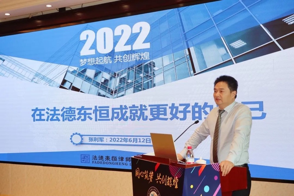 課程的最后,法德東恒執(zhí)委會主席張利軍為學員們帶來了《在法德東恒成就更好的自己》的主題分享。張利軍結合當下法律行業(yè)現(xiàn)狀與青年律師的迷茫,提出要做一個有擔當、有追求、有情懷、有操守的人,以法德東恒各業(yè)務研究會為助力,夯實業(yè)務基礎,積極參與所務與公務,勇于承擔社會責任,拒絕“躺平”,多看多學,增值自己,以復合型律師為目標,精益求精,做到“進來是鐵,出去是鋼”。