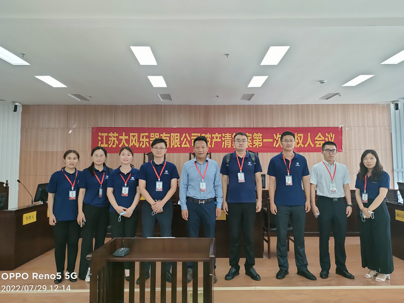 2022年7月29日,江蘇大風(fēng)樂器有限公司破產(chǎn)清算案第一次債權(quán)人會議在沛縣人民法院順利召開。