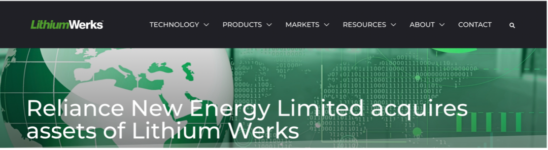 全球鋰電池行業(yè)龍頭企業(yè)(Lithium Werks)以及印度上市公司信實工業(yè)(Reliance Industries)于近期發(fā)布收購信息,Reliance Industries斥資6100萬美元收購Lithium Werks的資產(chǎn),包括約219項專利、在中國的制造工廠、關(guān)鍵業(yè)務(wù)合同和現(xiàn)有員工。