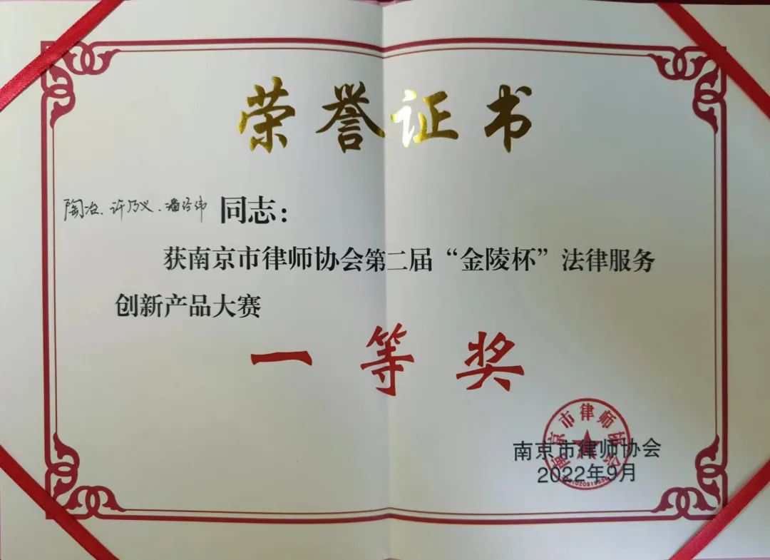 動(dòng)態(tài) | 法德東恒律師榮獲“金陵杯”法律服務(wù)創(chuàng)新產(chǎn)品大賽一等獎(jiǎng)!