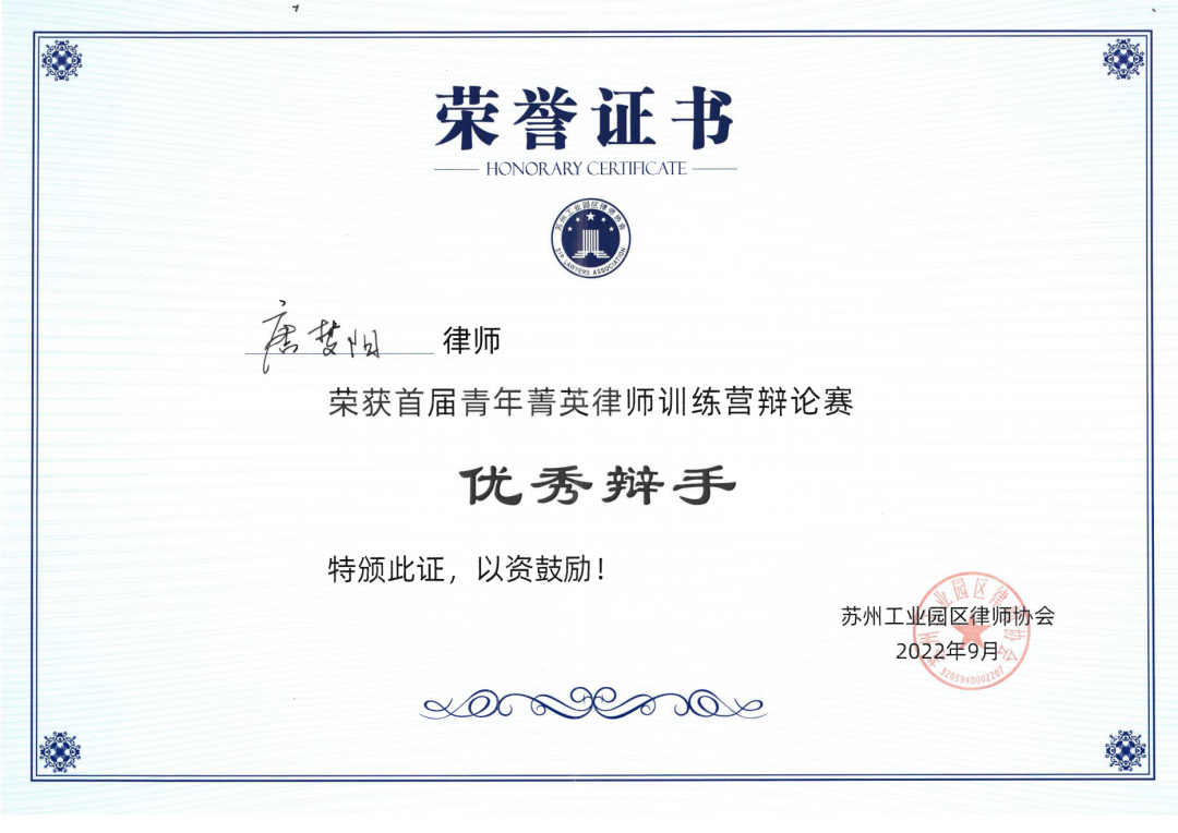 很榮幸參加園區(qū)首屆青訓營,感謝司法局、律協(xié)領(lǐng)導對青年律師的支持與培養(yǎng)。