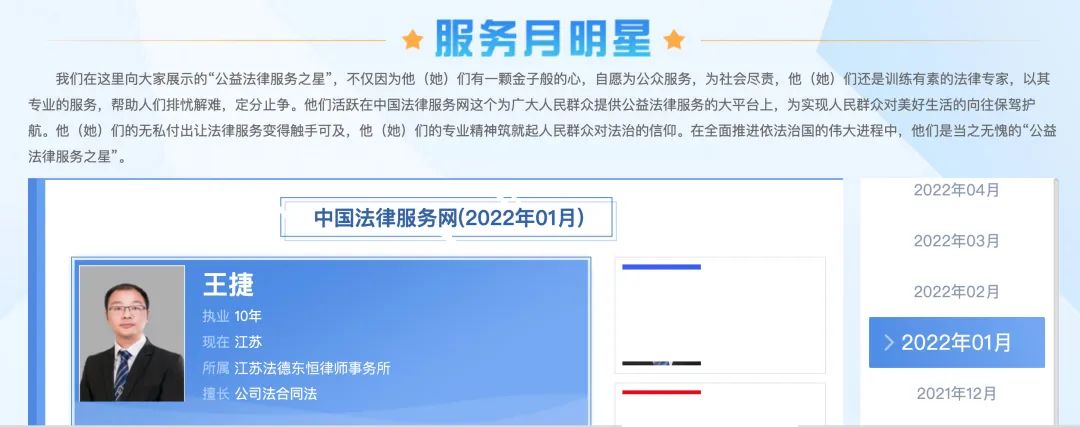 △2022年1月“服務(wù)月明星”截圖(圖 | 中國法律服務(wù)網(wǎng))