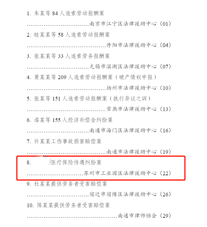 近日,江蘇省法律援助基金會(huì)公布了2022年度第一批典型案例的評(píng)選結(jié)果,法德東恒(蘇州)律師事務(wù)所董霏律師承辦的一則醫(yī)療保險(xiǎn)待遇損失賠償糾紛案入選。