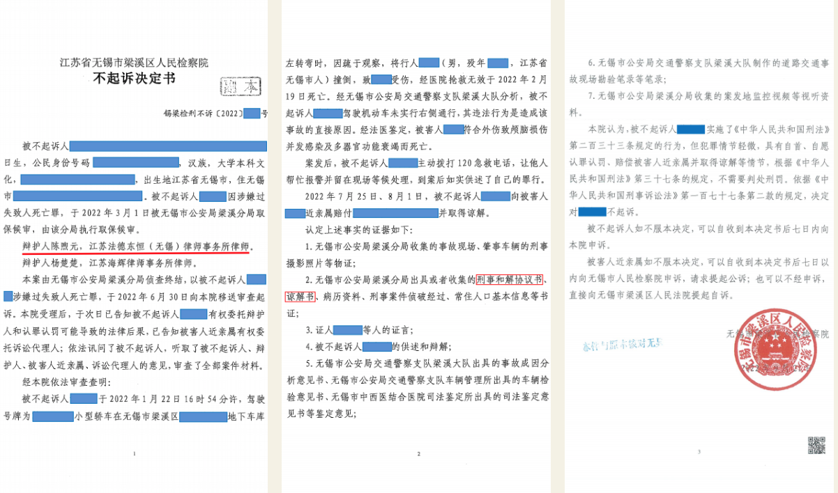 近日,法德東恒(無(wú)錫)律師事務(wù)所陳煦元律師承辦的H某某涉嫌過(guò)失致人死亡罪一案,檢察機(jī)關(guān)最終作出了不起訴的決定。