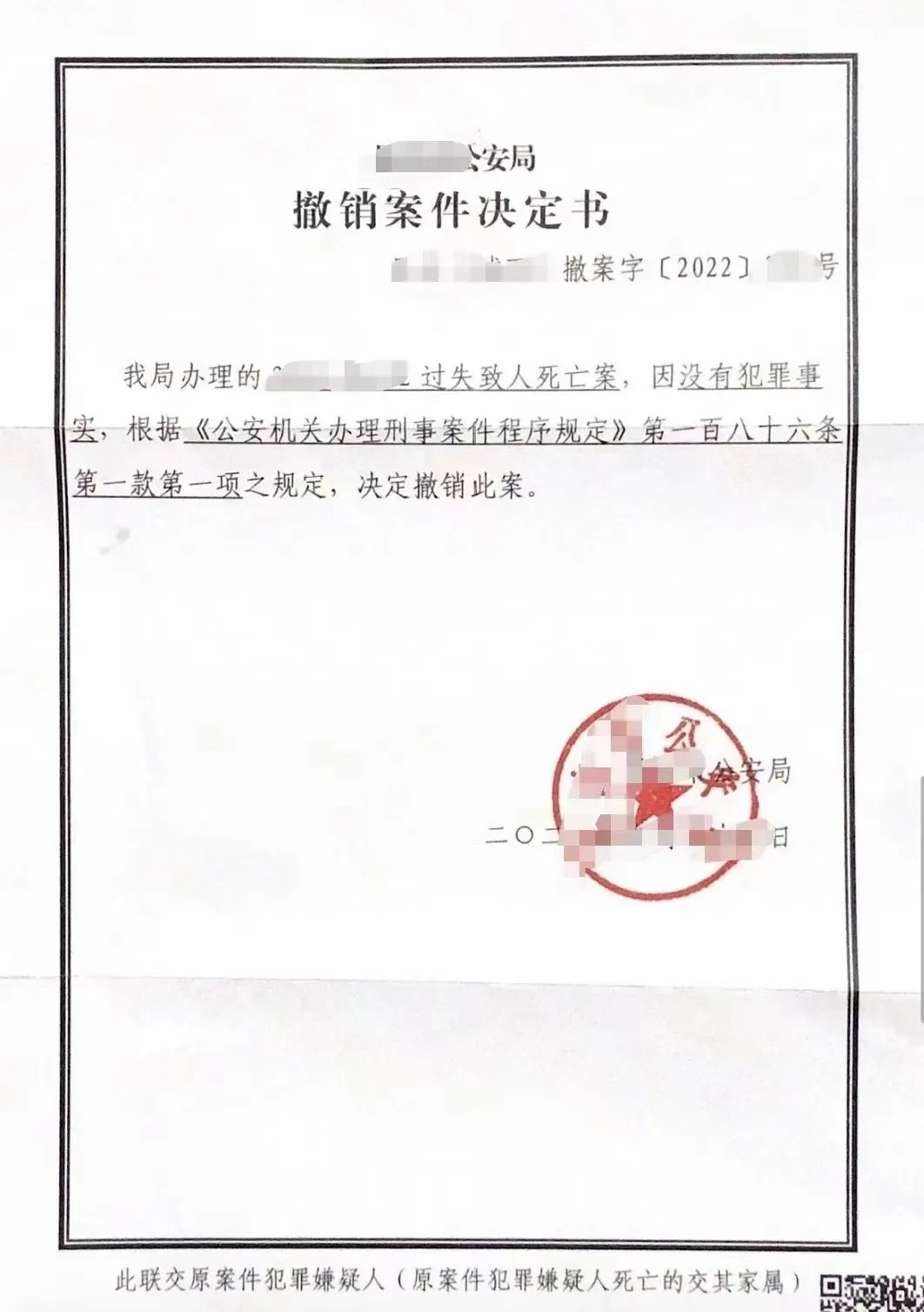 辦案手記 | 過失致人死亡案,無罪辯護后撤銷案件