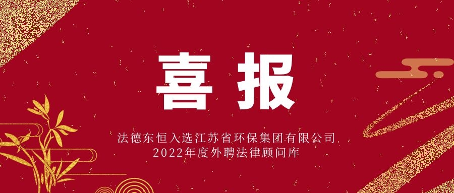 資訊 | 法德東恒入選江蘇省環(huán)保集團有限公司2022年度外聘法律顧問庫