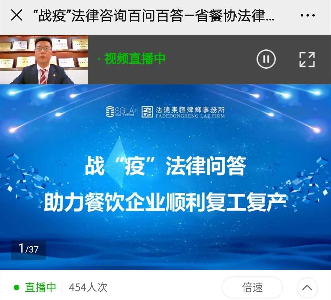 助力企業(yè)復(fù)工復(fù)產(chǎn)?|?法德東恒律師受邀為江蘇省餐飲行業(yè)協(xié)會授課