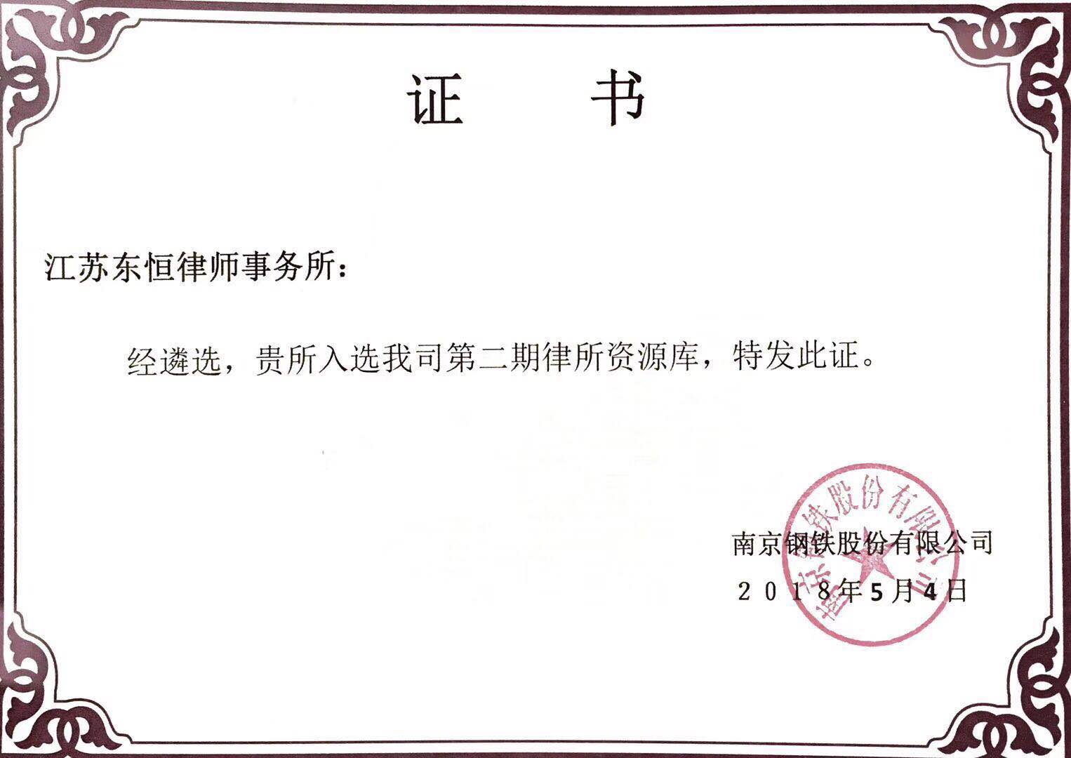 法德東恒入選南京鋼鐵股份有限公司律所資源庫「法德東恒動態(tài)」